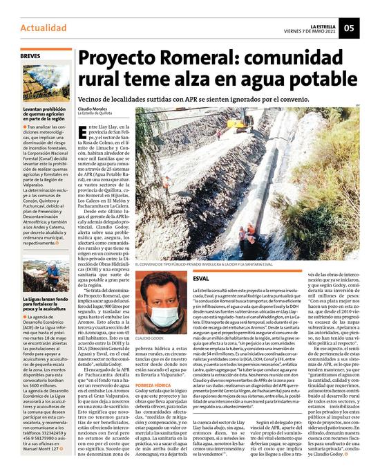 34Proyecto Romeral: comunidad rural teme alza en agua potable Pág. 5