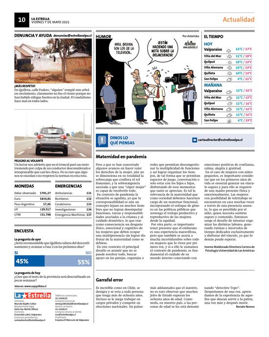 41Gendarmes del CDP de Quillota piden medidas para evitar otros brotes Pág. 7