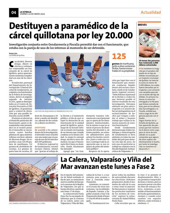 24Destituyen a paramédico de la cárcel quillotana por ley 20.000 Pág. 4