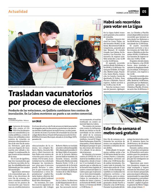 27Trasladan vacunatorios por proceso de elecciones Pág. 5
