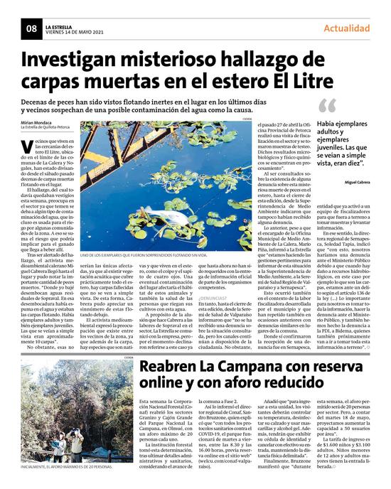 34Investigan misterioso hallazgo de carpas muertas en el estero El Litre Pág. 8