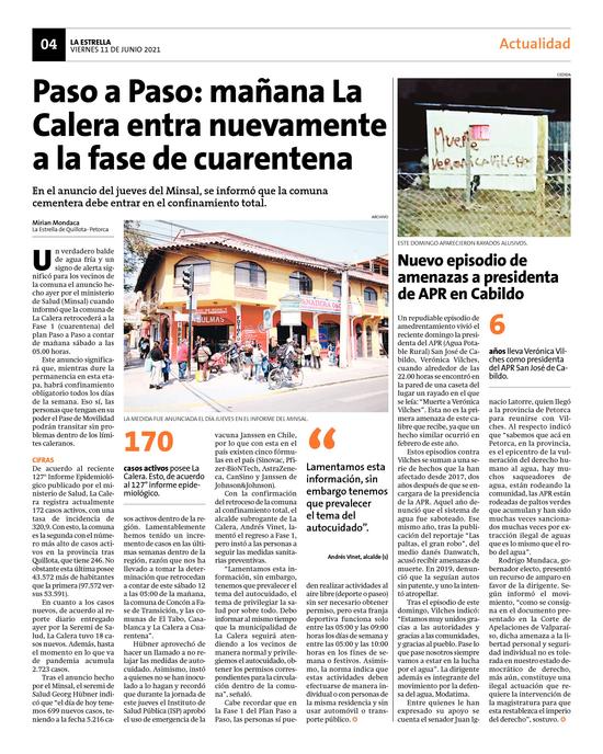 27Nuevo episodio de amenazas a presidenta de APR en Cabildo Pág. 4