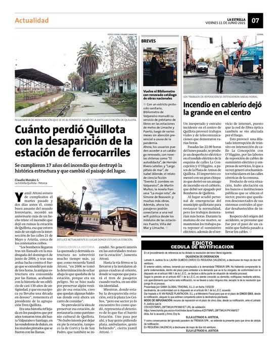21Cuánto perdió Quillota con la desaparición de la estación de ferrocarriles Pág. 7