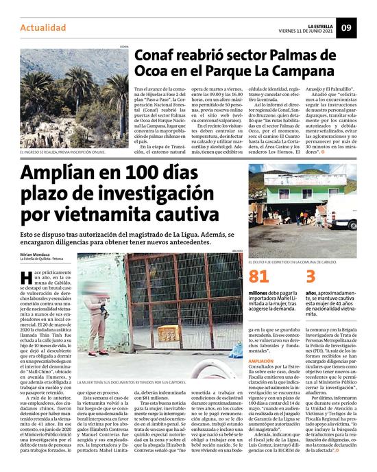 15Amplían en 100 días plazo de investigación por vietnamita cautiva Pág. 9