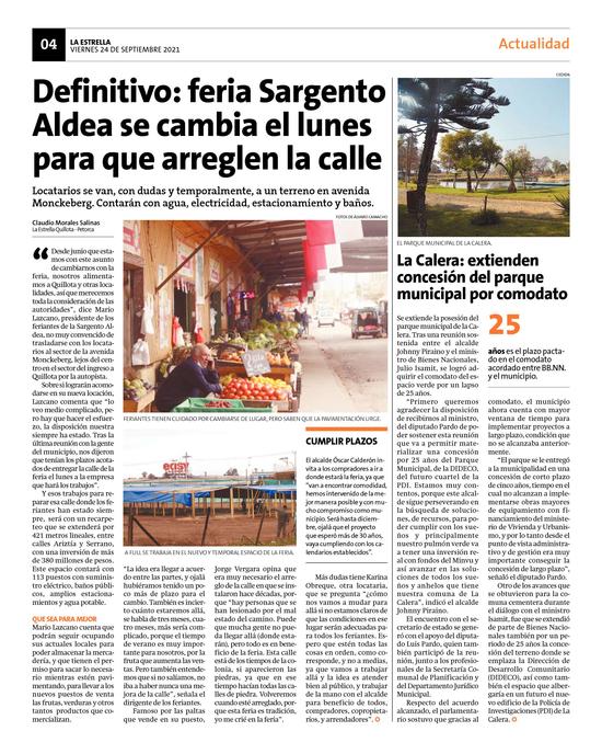 26Definitivo: feria Sargento Aldea se cambia el lunes para que arreglen la calle Pág. 4
