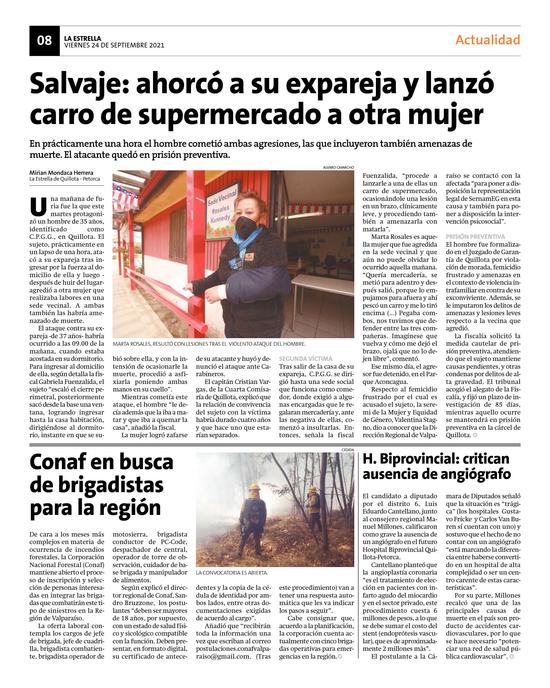 25Quillotano quedó graves tras ser apuñalado mientras iba a su casa Pág. 3