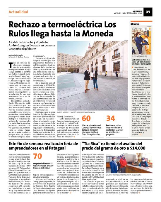 11Rechazo a termoeléctrica Los Rulos llega hasta la Moneda Pág. 9