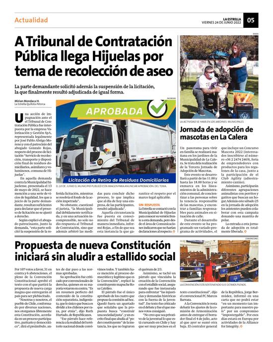 27A Tribunal de Contratación Pública llega Hijuelas por tema de recolección de aseo Pág. 5