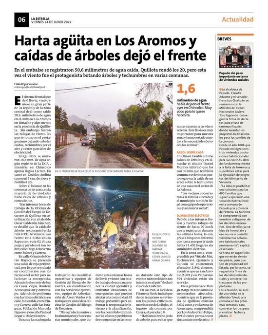 30Harta agüita en Los Aromos y caídas de árboles dejó el frente Pág. 6