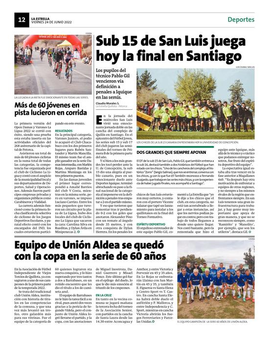 7Equipo de Unión Aldea se quedó con la copa en la serie de 60 años Pág. 12