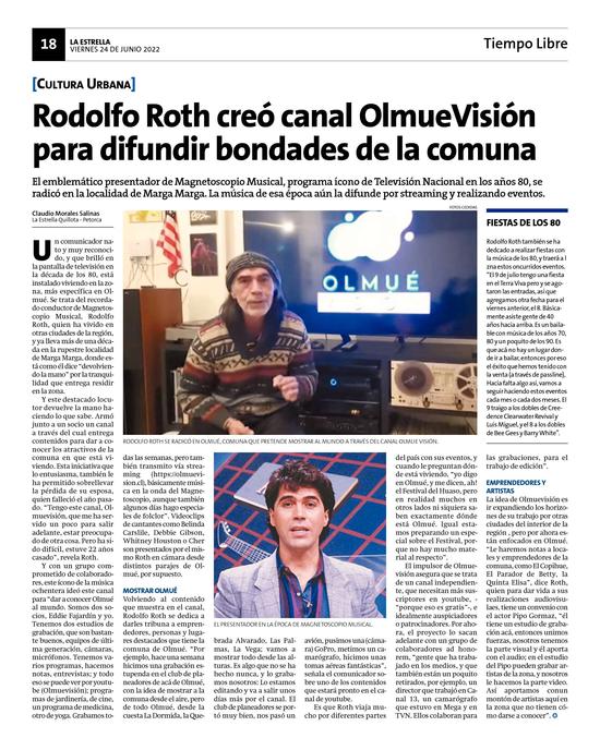 18Rodolfo Roth creó canal OlmueVisión para difundir bondades de la comuna Pág. 18