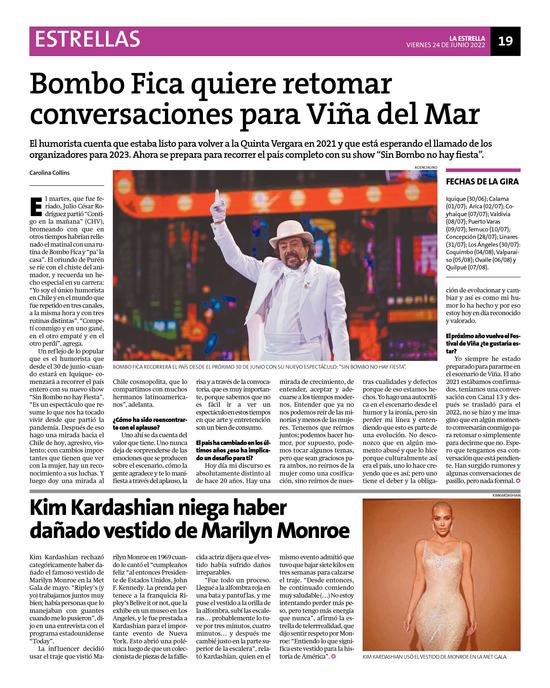 19Bombo Fica quiere retomar conversaciones para Viña del Mar Pág. 19