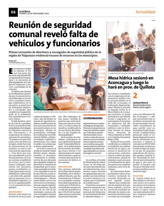 29Mesa hídrica sesionó en Aconcagua y luego lo hará en prov. de Quillota Pág. 4