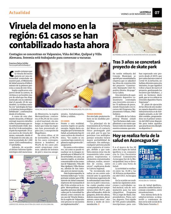 38Viruela del mono en la región: 61 casos se han contabilizado hasta ahora Pág. 7