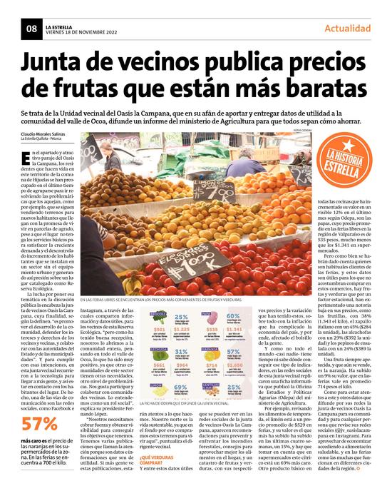 39Junta de vecinos publica precios de frutas que están más baratas Pág. 8
