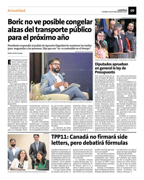 40Boric no ve posible congelar alzas del transporte público para el próximo año Pág. 9