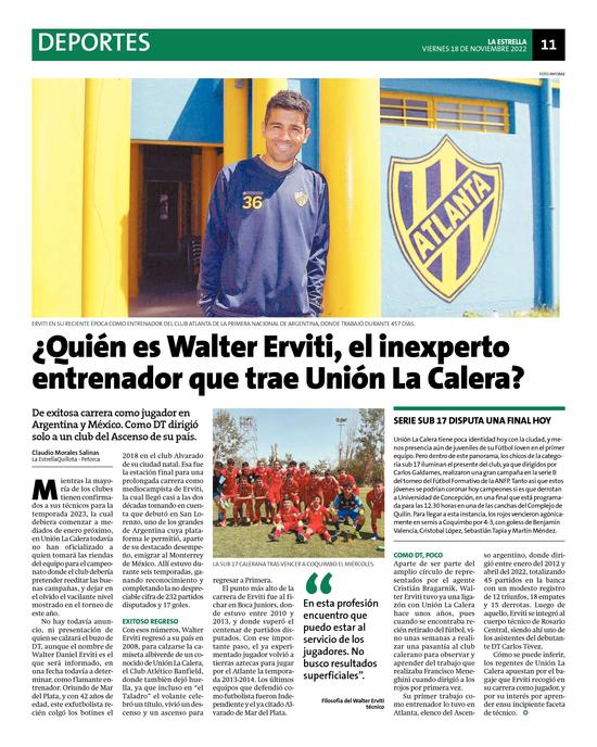 5¿Quién es Walter Erviti, el inexperto entrenador que trae Unión La Calera? Pág. 11