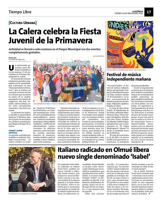 16Italiano radicado en Olmué libera nuevo single denominado 'Isabel' Pág. 17