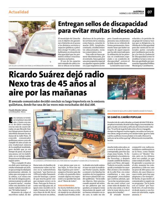 30Ricardo Suárez dejó radio Nexo tras de 45 años al aire por las mañanas Pág. 7