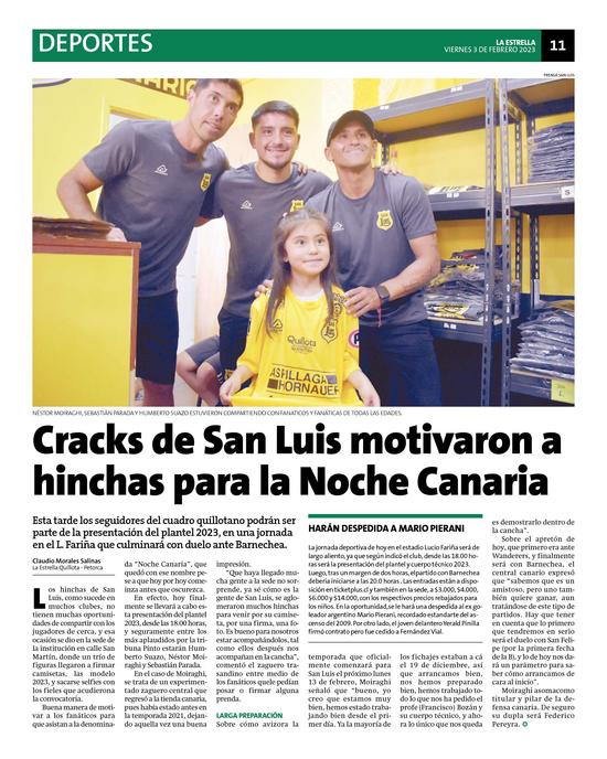 15Cracks de San Luis motivaron a hinchas para la Noche Canaria Pág. 11