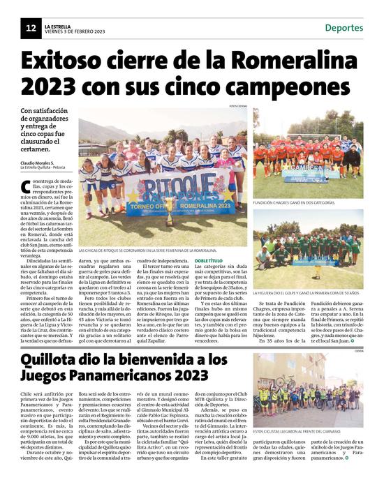13Exitoso cierre de la Romeralina 2023 con sus cinco campeones Pág. 12