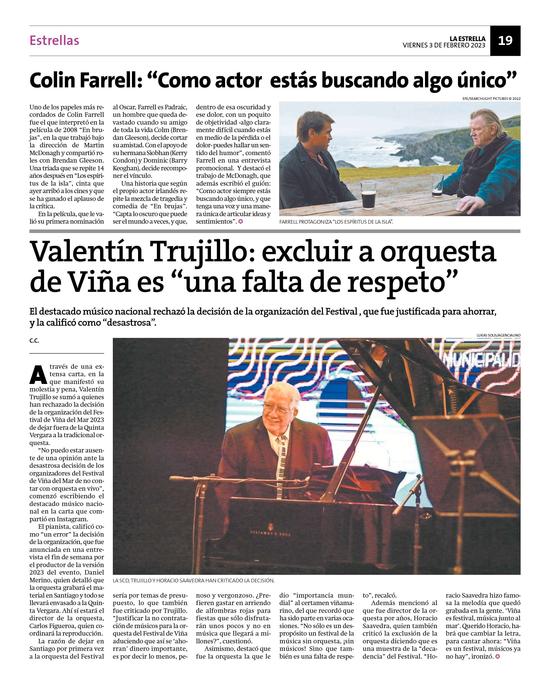 34Valentín Trujillo: excluir a orquesta de Viña es "una falta de respeto" Pág. 19