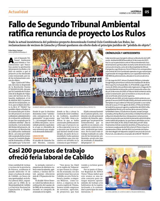 20Fallo de Segundo Tribunal Ambiental ratifica renuncia de proyecto Los Rulos Pág. 5