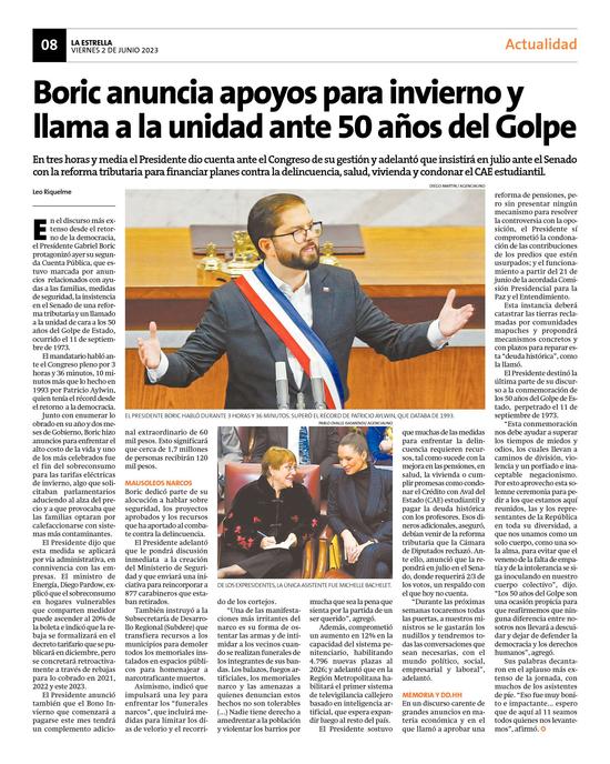 33Boric anuncia apoyos para invierno y llama a la unidad ante 50 años del Golpe Pág. 8