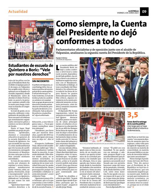 28Estudiantes de escuela de Quintero a Boric: "Vele por nuestros derechos" Pág. 9