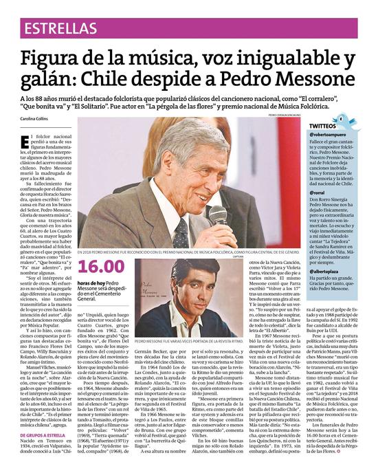 15Figura de la música, voz inigualable y galán: Chile despide a Pedro Messone Pág. 18
