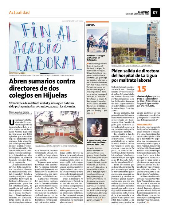 35Piden salida de directora del hospital de La Ligua por maltrato laboral Pág. 7