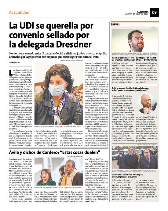 18Fiscal: el gobernador Rivas es indagado en calidad de imputado por trato con ONG por 2.000 millones Pág. 9