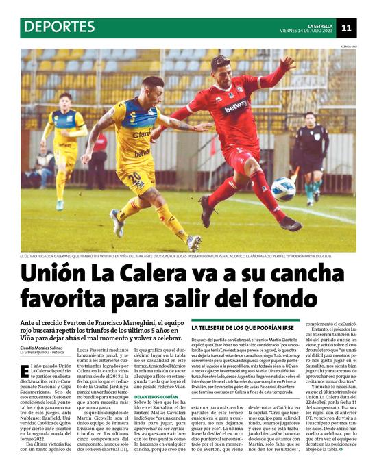 8Unión La Calera va a su cancha favorita para salir del fondo Pág. 11