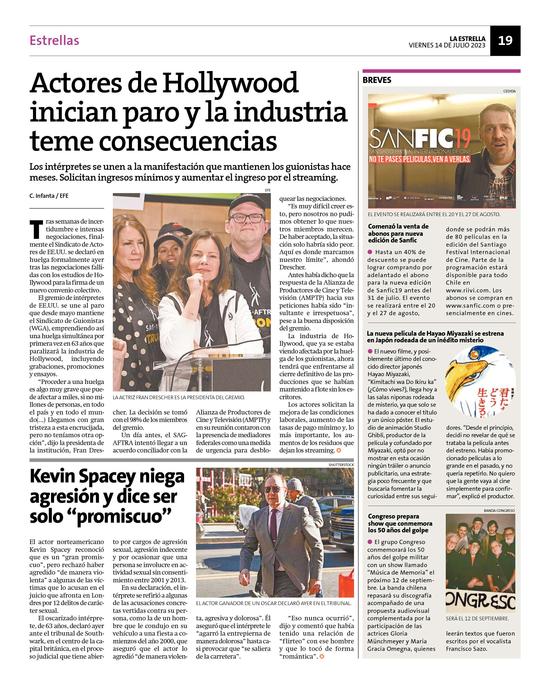 15Actores de Hollywood inician paro y la industria teme consecuencias Pág. 19