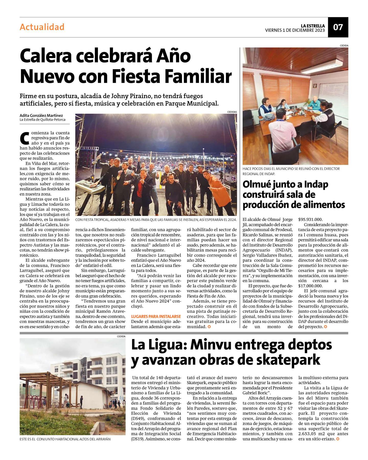 "Tendremos una gran fiesta en nuestro parque minicipal Ramón Aravena, dentro de ese contexto, tendremos un gran show de fin de año, de carácter familiar, con una agrupación tropical de renombre, de nivel nacional e internacional" adelantó el alcalde subrogante.