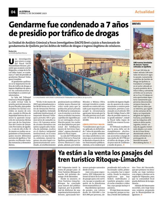 24Gendarme fue condenado a 7 años de presidio por tráfico de drogas Pág. 4