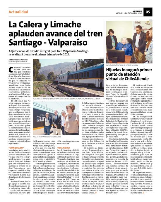 27La Calera y Limache aplauden avance del tren Santiago - Valparaíso Pág. 5