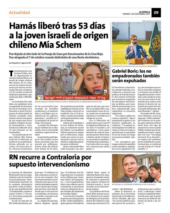 35Hamás liberó tras 53 días a la joven israelí de origen chileno Mía Schem Pág. 9