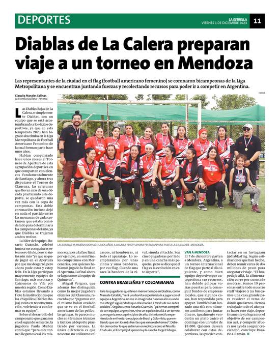 4Diablas de La Calera preparan viaje a un torneo en Mendoza Pág. 11