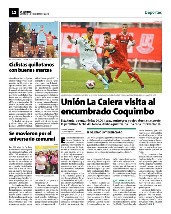 8Unión La Calera visita al encumbrado Coquimbo Pág. 12