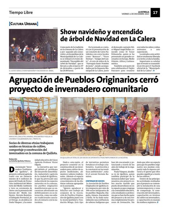 11Agrupación de Pueblos Originarios cerró proyecto de invernadero comunitario Pág. 17