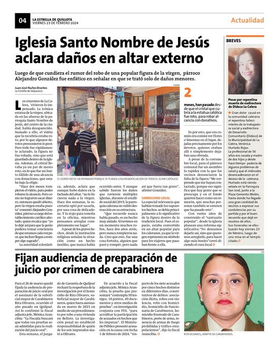 28Iglesia Santo Nombre de Jesús aclara daños en altar externo Pág. 4