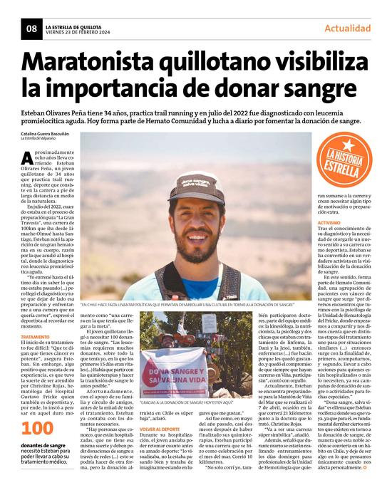 39Maratonista quillotano visibiliza la importancia de donar sangre Pág. 8