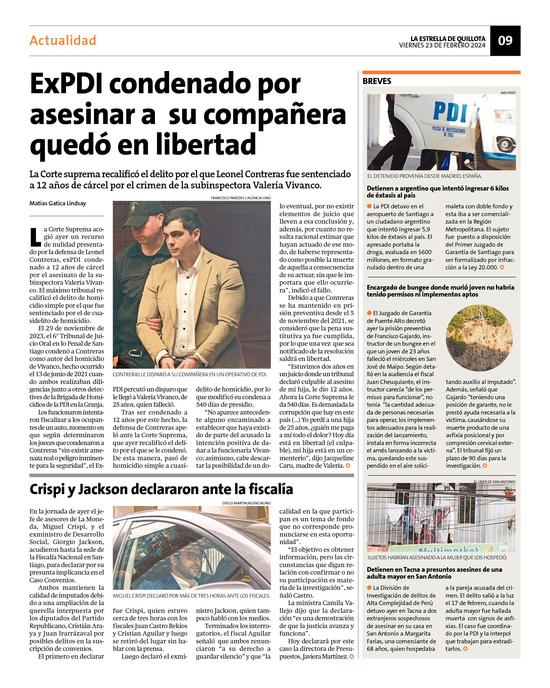 20ExPDI condenado por asesinar a su compañera quedó en libertad Pág. 9