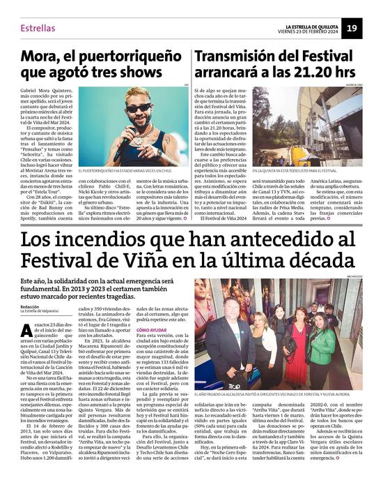 18Los incendios que han antecedido al Festival de Viña en la última década Pág. 19