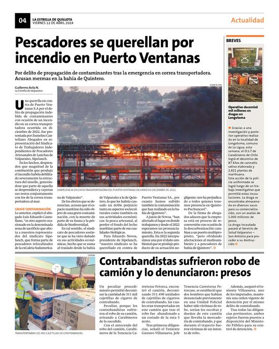29Pescadores se querellan por incendio en Puerto Ventanas Pág. 4