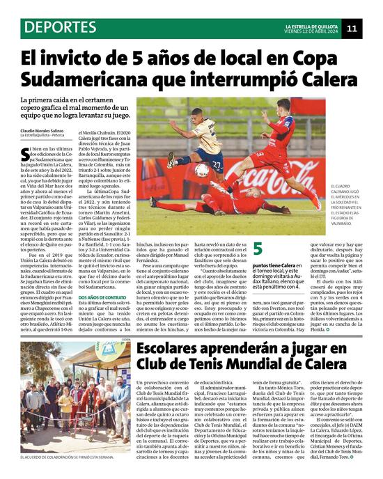 4El invicto de 5 años de local en Copa Sudamericana que interrumpió Calera Pág. 11