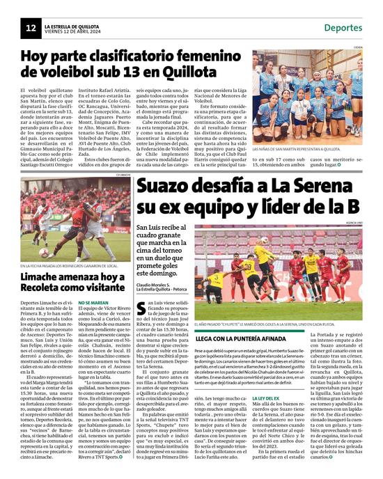 8Limache amenaza hoy a Recoleta como visitante Pág. 12