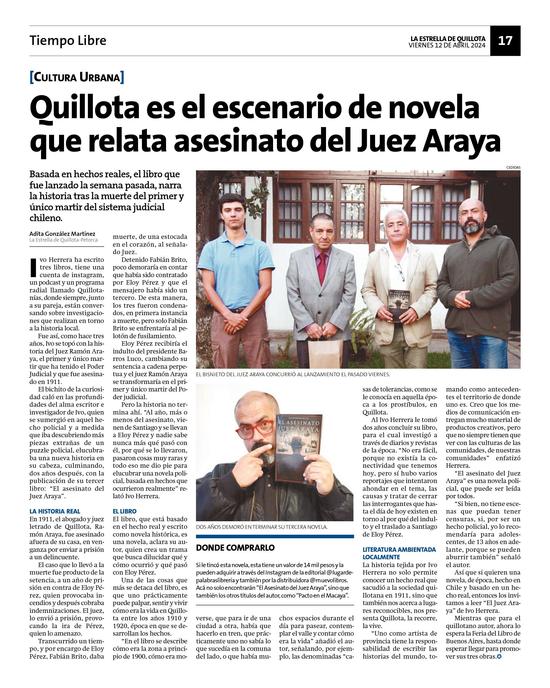 15Quillota es el escenario de novela que relata asesinato del Juez Araya Pág. 17