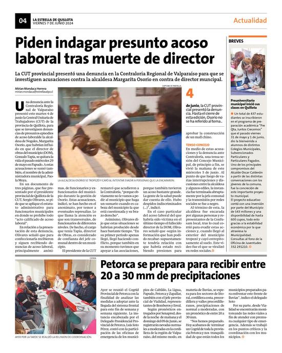 23Piden indagar presunto acoso laboral tras muerte de director Pág. 4